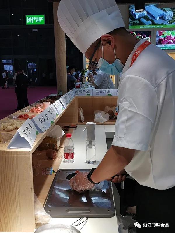 应用产品、餐饮标准化食品烹饪体验区,工作人员正忙得热火朝天。现场烹饪、加工和摆盘,新鲜出炉的菜品、美味小食口感满分。顶味食品以健康美味的特质获得消费者的认可,用实力诠释品牌竞争力。
