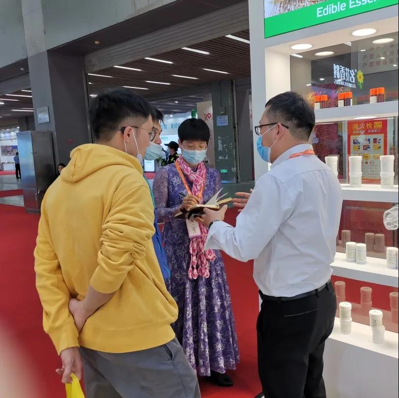 各行业的专业观众在浙江顶味展台前驻足,询问产品、探讨新的健康原料应用场景和健康产业的发展方向。