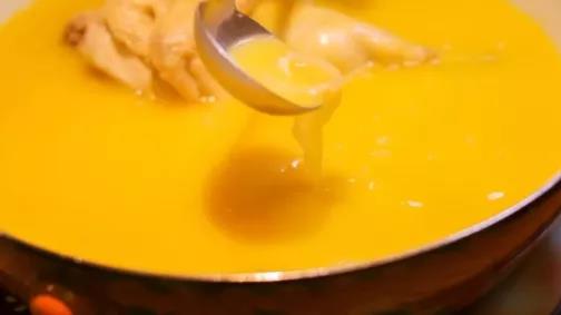 汤底浓郁金黄,含有丰富的胶原蛋白,以及多种维生素、钙、锌、铁、硒等微量元素。能够补血养颜,提高人体的免疫力,具有滋阴、固肾、培精的功效。